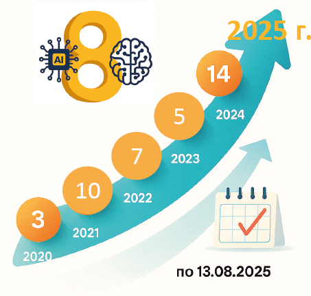 Рис. 3. Динамика регистрации МИ с ИИ в России (2020-2025 гг.).